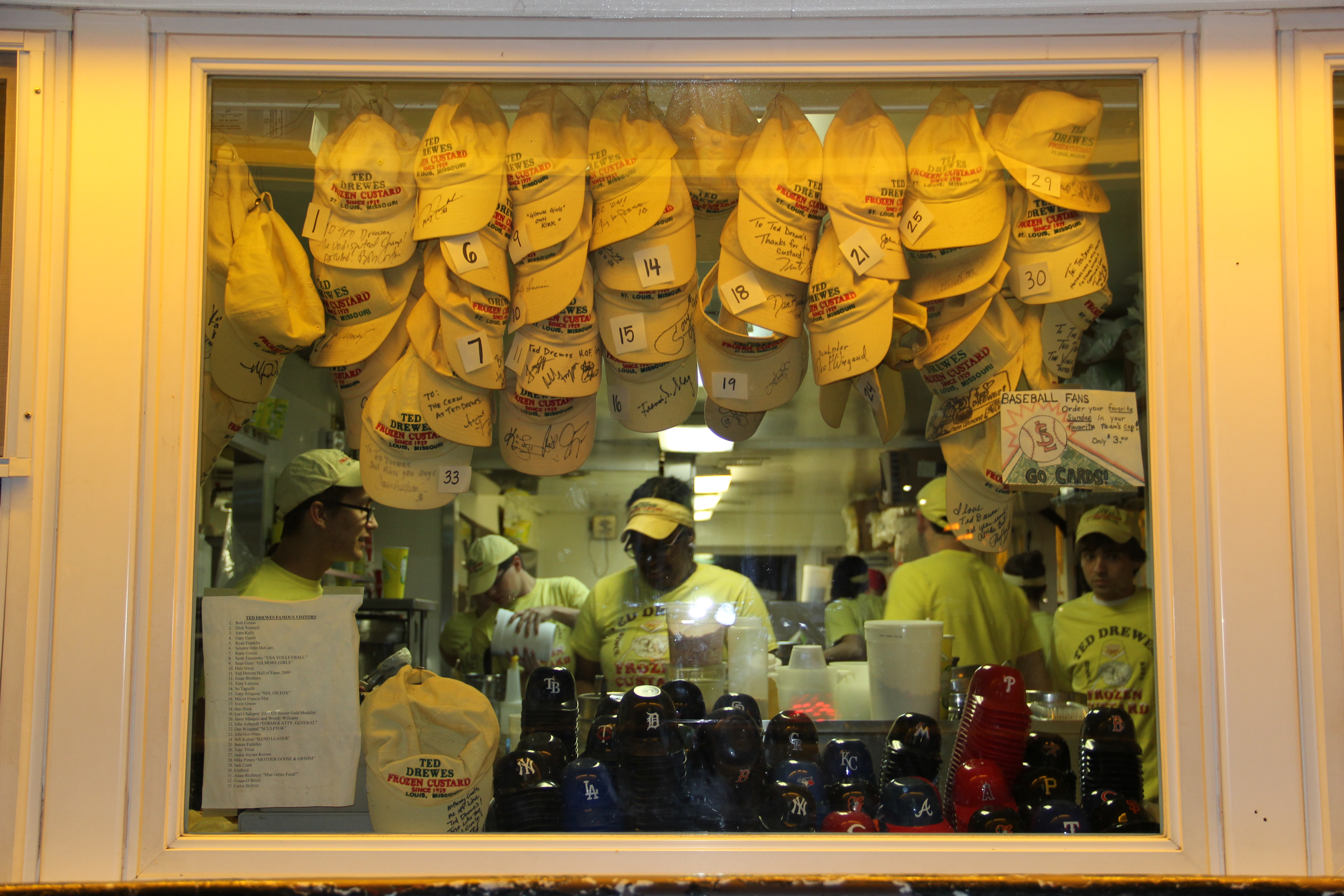 This week I went to St. Louis and I got to see my cousin Kylie whom I haven’t seen in forever and ever and ever. It was really fun to catch up. She first took me to Ted Drew’s which is a famous Frozen Custard place. When celebrities come to St. Louis they go visit. I saw hats in the window signed by Conan O’Brien, The Jonas Brothers, and Katie Couric. They are known for their concrete mixers that won’t fall out of your cup.